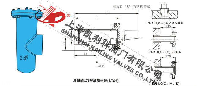 產品名稱: 對焊連接反折流T型過濾器 產品型號: ST26