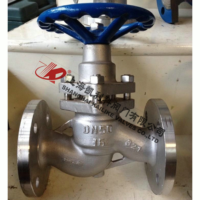 UJ41H不銹鋼柱塞截止閥是由閥體、閥蓋、閥桿,柱塞,導向、密封環、手輪等零件組成。當手輪旋轉時,通過閥桿帶動柱塞在導向套中上、下往復運動,使柱塞端部斜錐面與閥座錐面完成閥門的開啟與關閉功能。